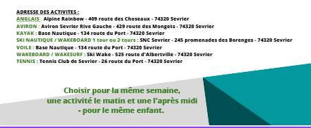 - Stages multi-activités : combinaison entre 2 activités, nautique ou terrestre, à partir de 4 ans – la journée